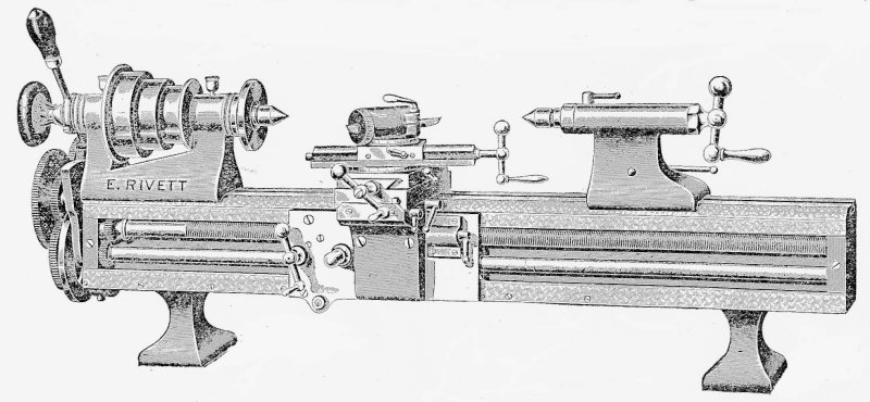 designed by Edward Rivett. It had the second largest production of any of the larger Rivett lathes, about 1800 total. The basic lathe changed little from its introduction in 1920 until production ceased in 1960. Approximately 1800 units were produced. These lathes could be found in laboratory shops in places like Harvard, Johns Hopkins and Yerkes Observatory. They were present in leading edge industrial laboratory shops as well. One on display at the Charles River Museum, is listed as the first lathe at Polaroid corporation. There are several in the Edison shops in West Orange, NJ. Part of the reason for the large production of the 608 was its popularity with the military during World War 2 where it was used on shipboard, in maintenance depots and shipped in large quantities to Great Britain. The 608 is considered my many familiar with them to be one of the finest small lathes ever made. 608 Sales Brochure (PDF) 608 Price List from 1943 (PDF) 608 Manual (PDF) |
